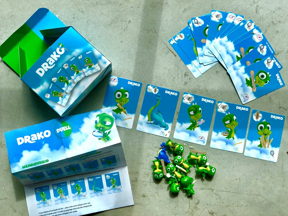Kalevi Drako kommipakkidest leitud Drako-kujukeste juurde tehtud kaardimäng |